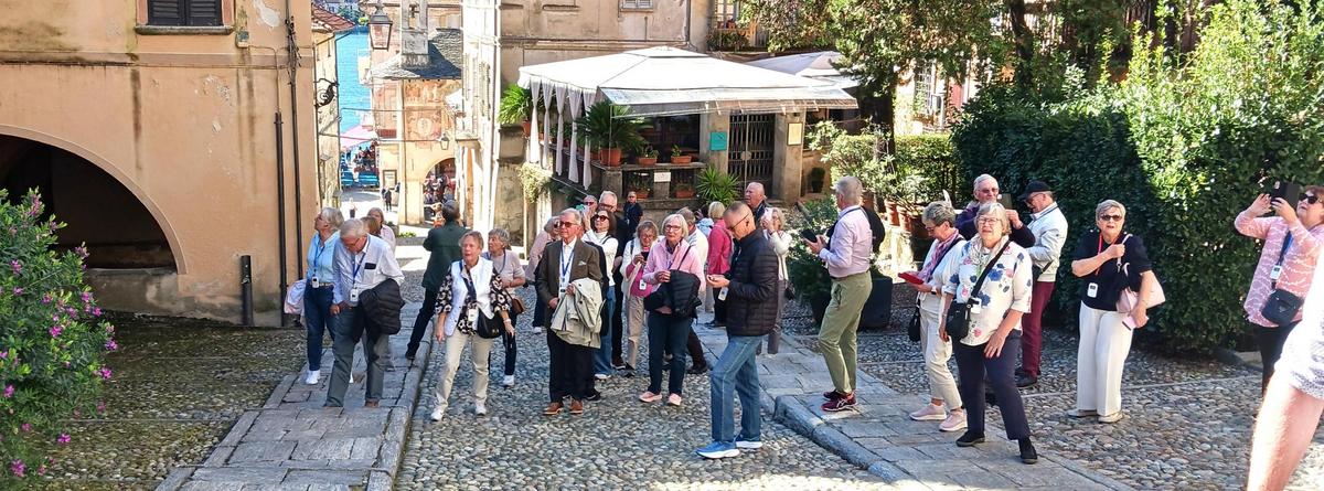 Pohjois-Italian retkeltämme: Ryhmämme Orta San Giulion kylässä, kuva: Terttu Hallenberg