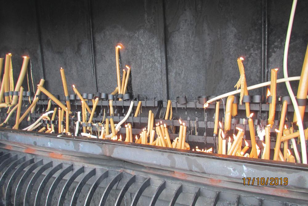Fatima - uusi ja vanhempi ilmestyskirkko, pyhiinvaeltajia ja kynttilöitä. Kuvat: Leena Railio