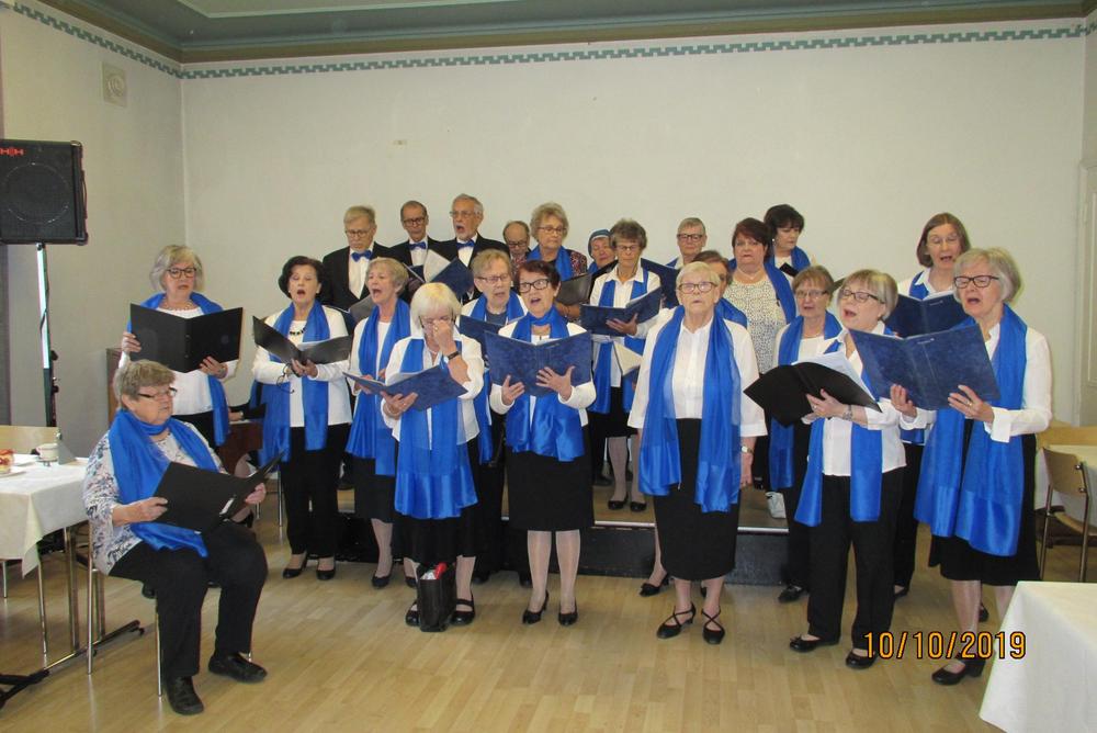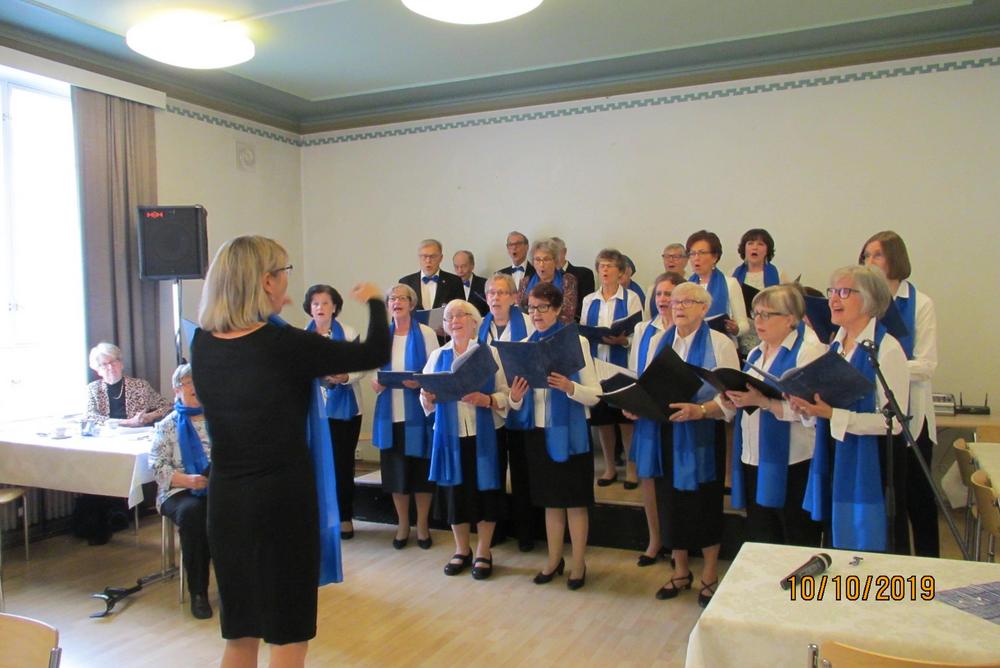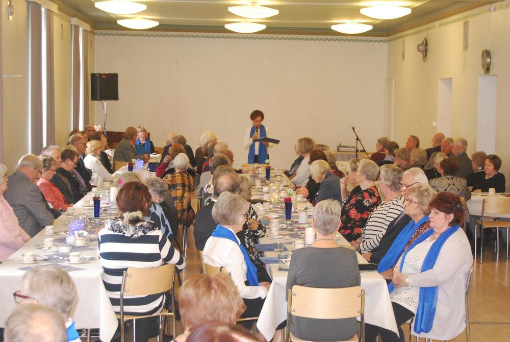 Syntymäpäivillä oli paikalla yli 50 tänä vuonna 75, 80, 85, 90 tai 90+ täyttänyttä jäsentämme. Sekakuoromme Ajattomat lauloi uuden johtajamme Taina Kujasen johdolla, puheenjohtajamme Sirkka-Liisa Virtanen toi puheessaan esille eläkeläisten yhä kasvavan määrän ja myös merkityksen yhteiskunnassa, ja jäsensihteerimme Kirsti Parikka haastatteli muutamaa juhlijaa. Iloista ja mukavaa yhdessäoloa kuvasi Leena Railio.