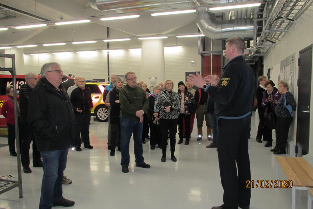 32 senioria tutustui Hämeenlinnan täysin uusittuun paloasemaan ja palomuseoon lähiseuturetkellämme 21.2. Pelastuspäällikkö Petri Talikan opastuksella saimme kuulla parhaita paloja kaupungin pelastustoiminnasta yli 200 vuoden ajalta. Tutuiksi tulivat myös kaluston uudet huoltotilat ja miehistötilat kuntosaleineen. Hallikuvan taustalla näkyvää liukutankoa ei kuitenkaan kukaan kokeillut - hiukan teki mieli, mutta... Kuvat: Leena Railio