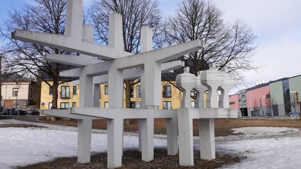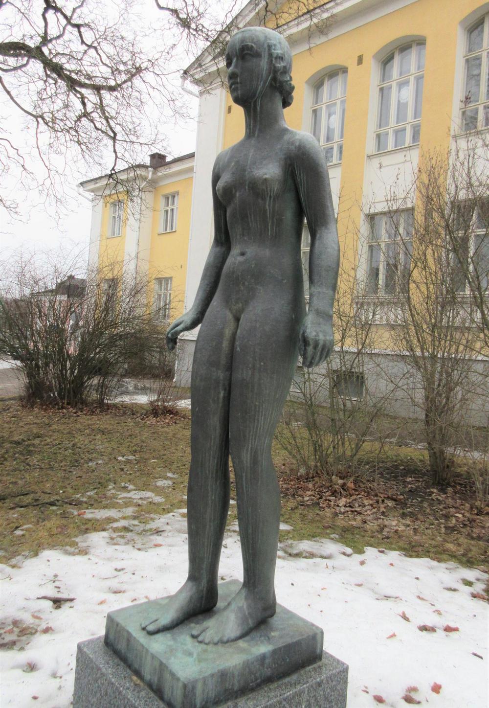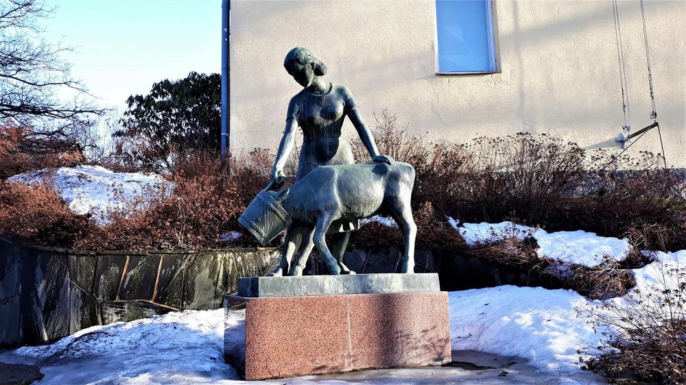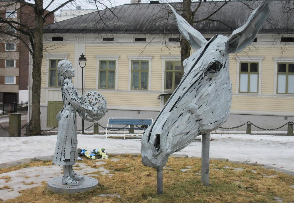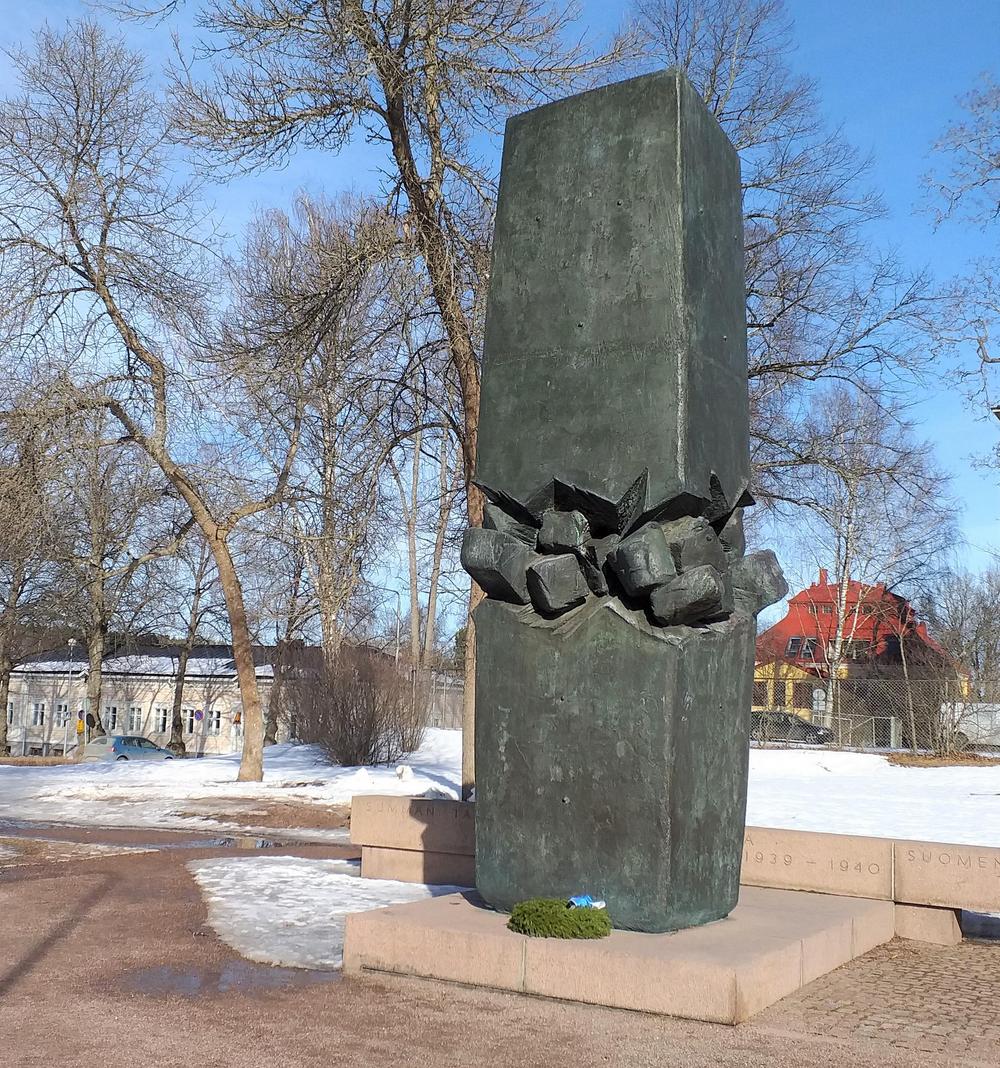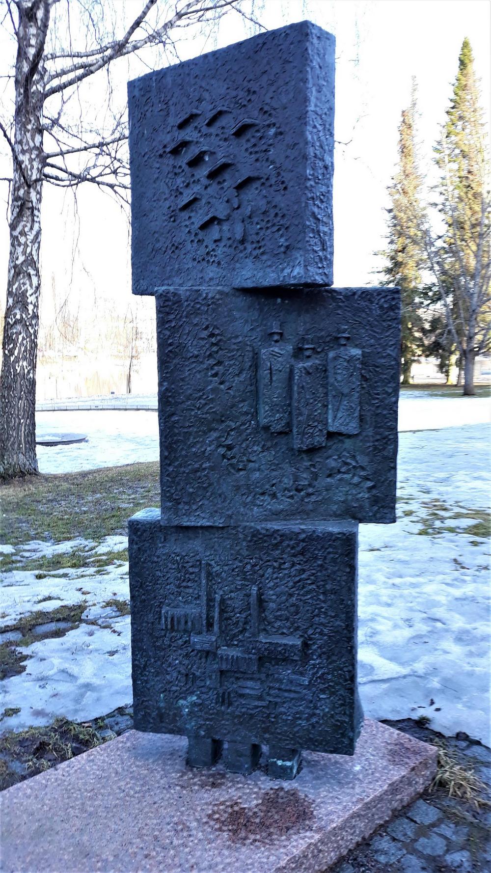 Anita kuvasi Lottapatsaan, josta oli myös kirjoitus Hämeen Sanomissa 27.3! Anitan matka jatkui viereisen Nuoruus-patsaan ja Summan taistelun muistomerkin kautta laivarantaan Herääminen-patsaan luo. Kuvat: Anita Wickström