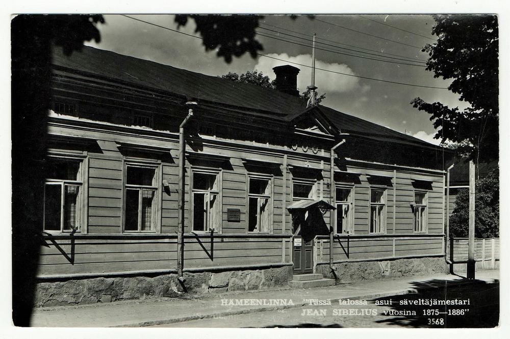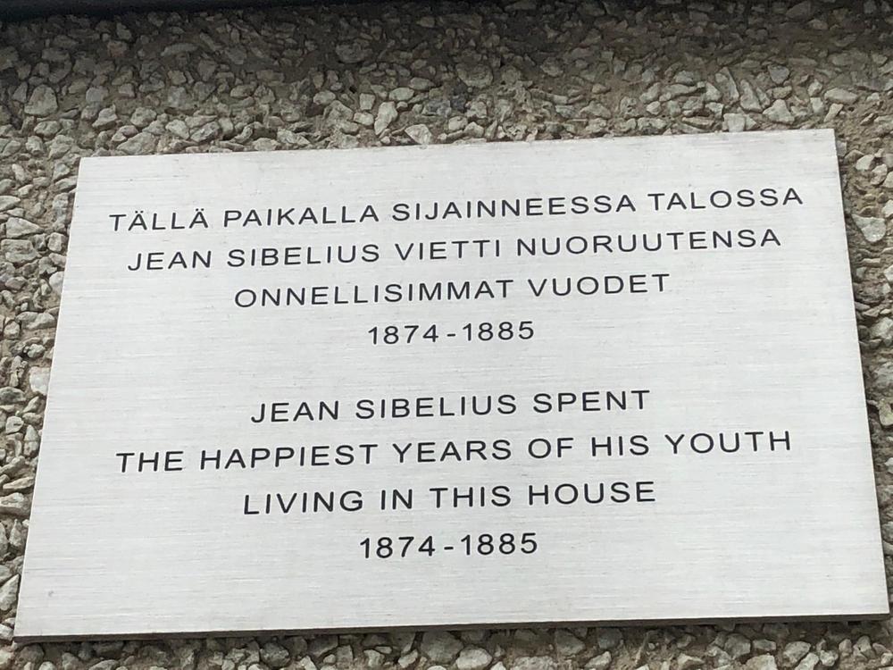 Matti kuvasi Sibeliuksen nuoruuden kodin seinälaatan, jonka englanninkielinen teksti mahdollisesti jo lähitulevaisuudessa korjataan. Kuvapari havainnollistaa kotitalon alkuperäistä ja purkua edeltävää, muuttunutta ulkonäköä. Kuvat: Matti Parkkonen