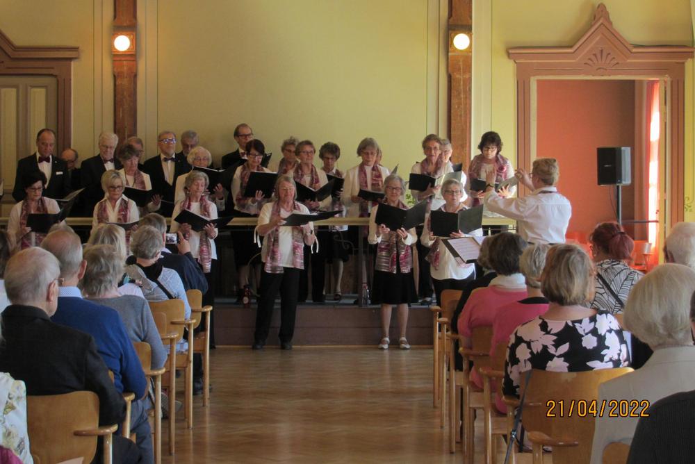 Ajattomat-kuoron konsertti 21.4.2022 - vihdoinkin, kahden korona- välivuoden jälkeen! Samalla ensimmäinen Taina Kujasen johtama kevätkonsertti, ohjelmisto lähes kokonaan uusi. Palokunnantalolla taas mukavasti yleisöä. Kuvat: Leena Railio