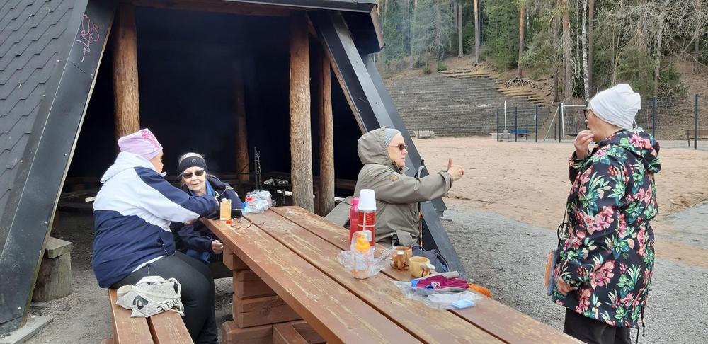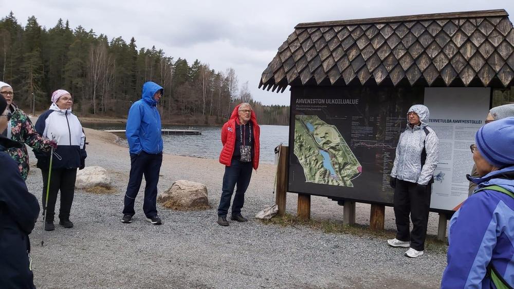 Seniorikävely saatiin toteuttaa viileässä mutta muuten mukavassa kevätsäässä Ahveniston vuoden 1952 olympiamaisemissa. 12 senioria kiersi Ahvenistonjärven eri ulkoilureittejä pitkin, osa jäi vielä kierroksen jälkeen nauttimaan omia eväitä Ahveniston kodalla, lisäksi muutama meistä nousi kuntoportaita Ahveniston harjulle.