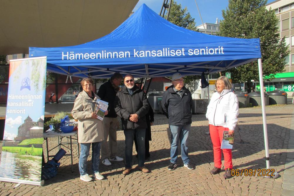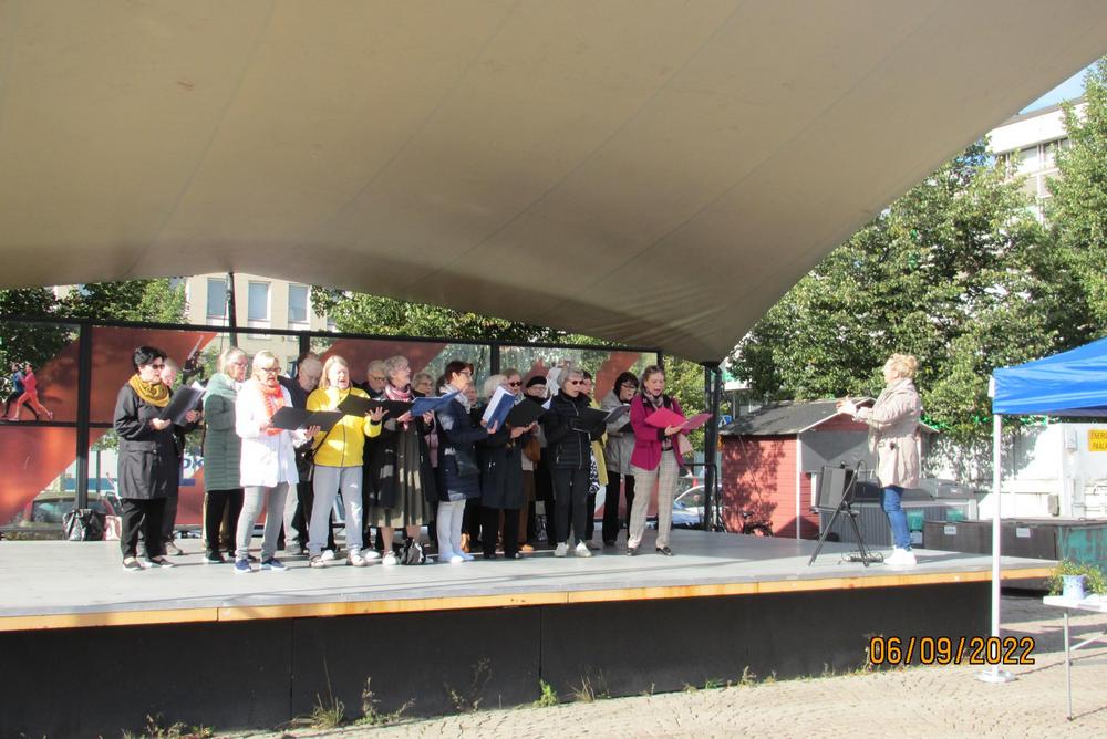 Yhdistyksemme esitteli toimintaansa Hämeenlinnan torilla kuukausimarkkinoiden yhteydessä 6.9.2022. Toritapahtumassa esiintyi myös Ajattomat-kuoromme. Kuvat: Leena Railio