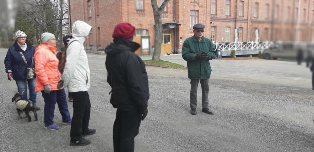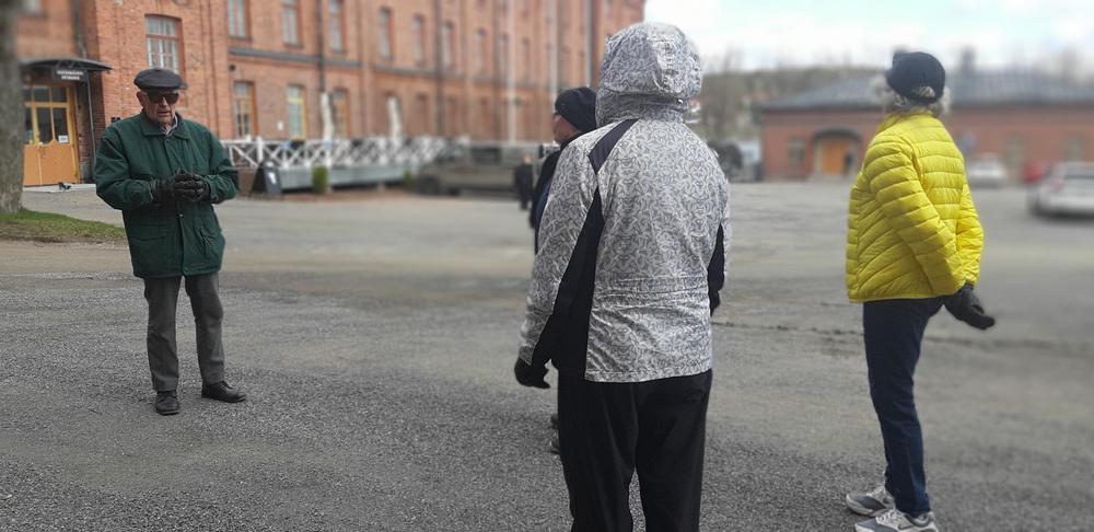 Perinteinen Seniorikävely lähti tänä vuonna Linnanpuistosta ja suuntautui Rantareitille. Mukana pääryhmässä 10 senioria ja yksi koira. Jo kolmatta kertaa oli mahdollisuus seniorikävelyyn myös "etänä", Liisa ja Matti Kivistö kiersivät koko Rantareitin jo aamupäivällä ja ottivat reitiltä kuvia. Päärymästämme vain yksi lähti kolean tuulisessa säässä kiertämään koko Rantareitin, muille riitti Linnanniemen kierros - nähtävää oli siinäkin, mukana ollut Matti Savonjousi kertoi alueen historiasta, sekä elämästä Linnan kasarmeilla 1940-luvulta alkaen - sodan ja pula-ajan niukkuudesta huolimatta tultiin alueella toimeen ja virikkeitä oli runsaasti, kasvimaista lentopallokenttiin. Kuvissamme Matti selostaa Museo Militarian edustalla alueen rakennusten monivaiheista historiaa. Kuvat Jorma Railio