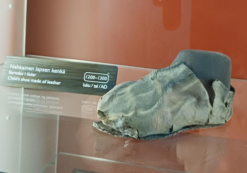 Paimion parantolassa oli esillä Aallon suunnittelema tuoli keuhkojen avaamiseen, Aboa Vetus- museossa mm. keskiaikainen lapsen nahkakenkä. Lopuksi kuva Airiston risteilyltä. Kuvat: Terttu Hallenberg