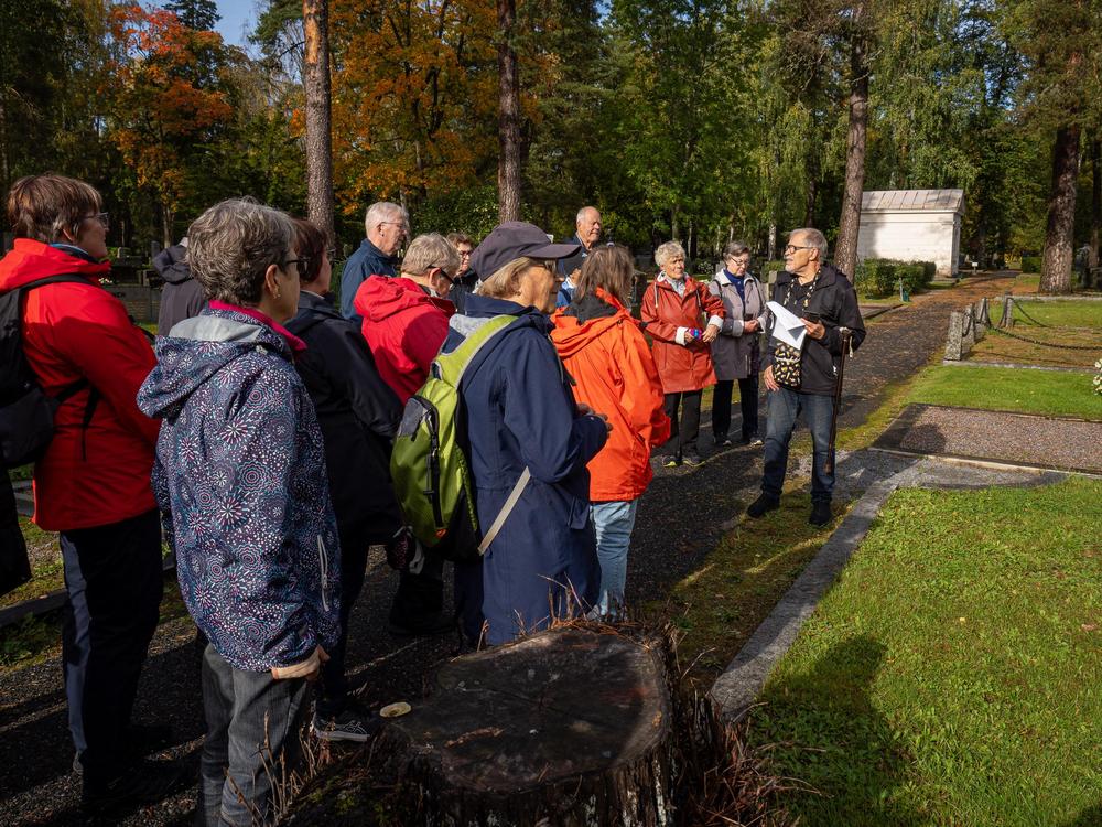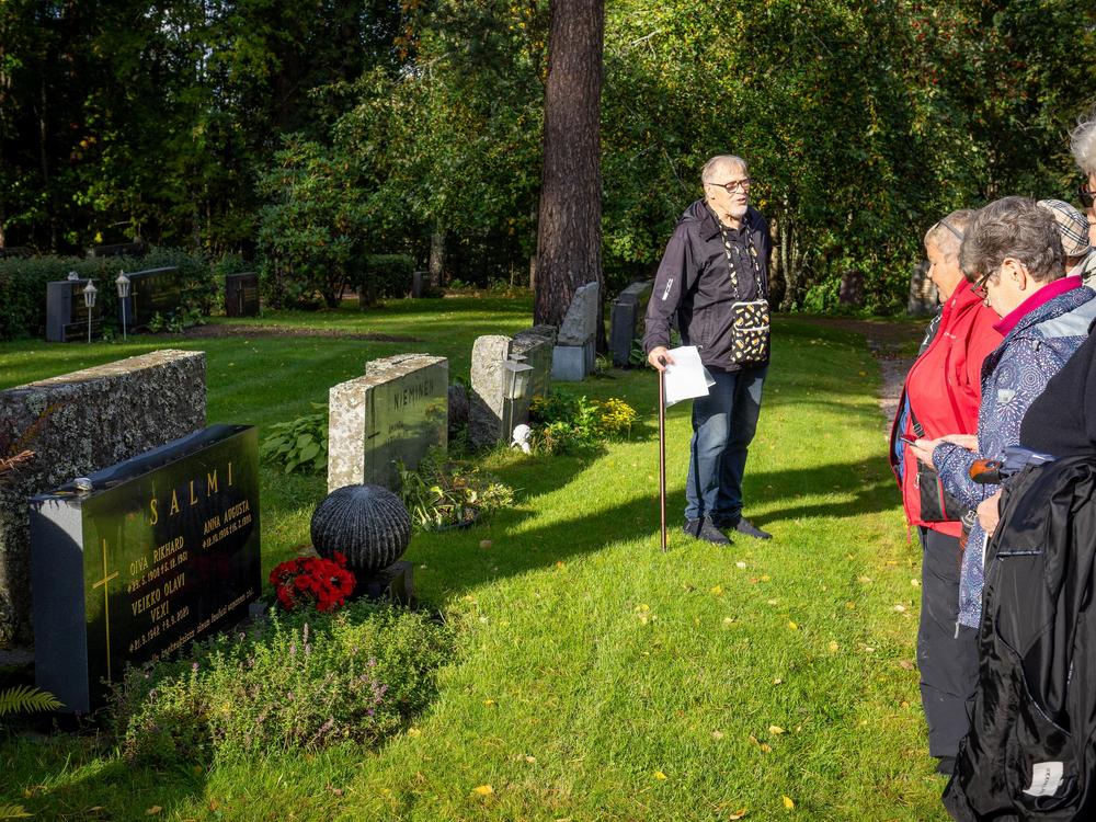 Voiko hautausmaalla inspiroitua- kyllä voi, ainakin tänään . Retken oppaamme, Jorma Railio, esitteli meille merkittävien ja tunnettujen henkilöiden hautapaikkoja sekä kertoi mielenkiintoisia tarinoita niin henkilöistä kuin tapahtumista. Joukkoon mahtui kunniakkaita Mannerheim-ristin ritareita, sotasankareita, tunnettuja taiteilijoita, menestyneitä urheilijoita ja hämeenlinnalaisia vaikuttajia. Oli upea, aurinkoinen päivä retkeillä.