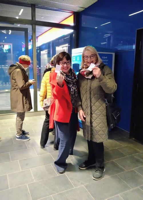 Ennen ratikka-ajelua ostimme liput matkanvetäjämme Sirkun opastuksella automaatista. Kuvat: Antero Rutanen ja Tuula Joensuu