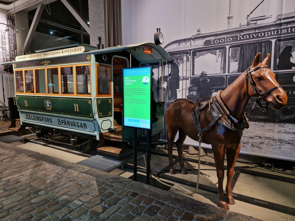 Ratikkamuseossa ihailimme vanhaa hevosratikkaa. Kuva: Antero Rutanen. Ryhmäämme sisällä museoratikassa kuvasi Anna Kaarina Aaltonen-Wagoner
