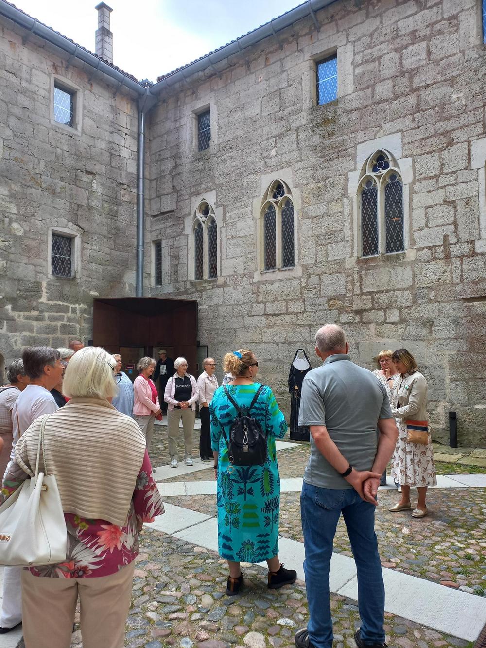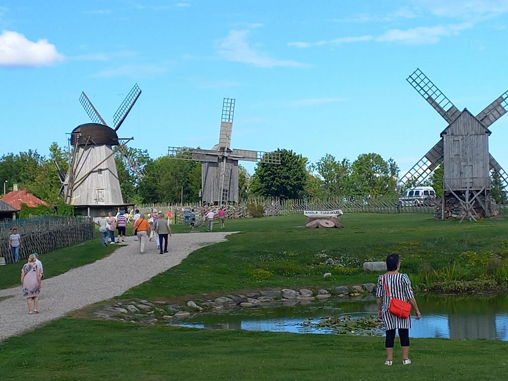 Ryhmäämme Kuressaaren piispanlinnan pihalla ja Anglan tuulimyllymäkeä Saarenmaalla kuvasi Sirkku Haapala.