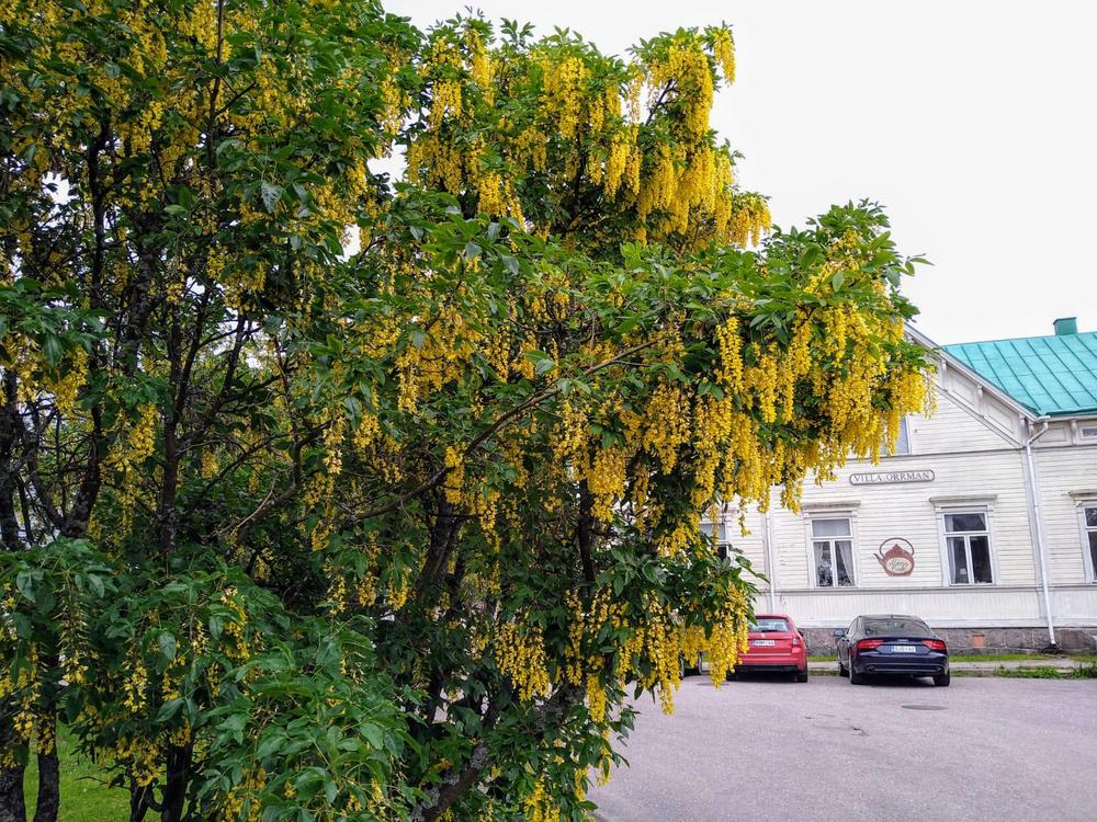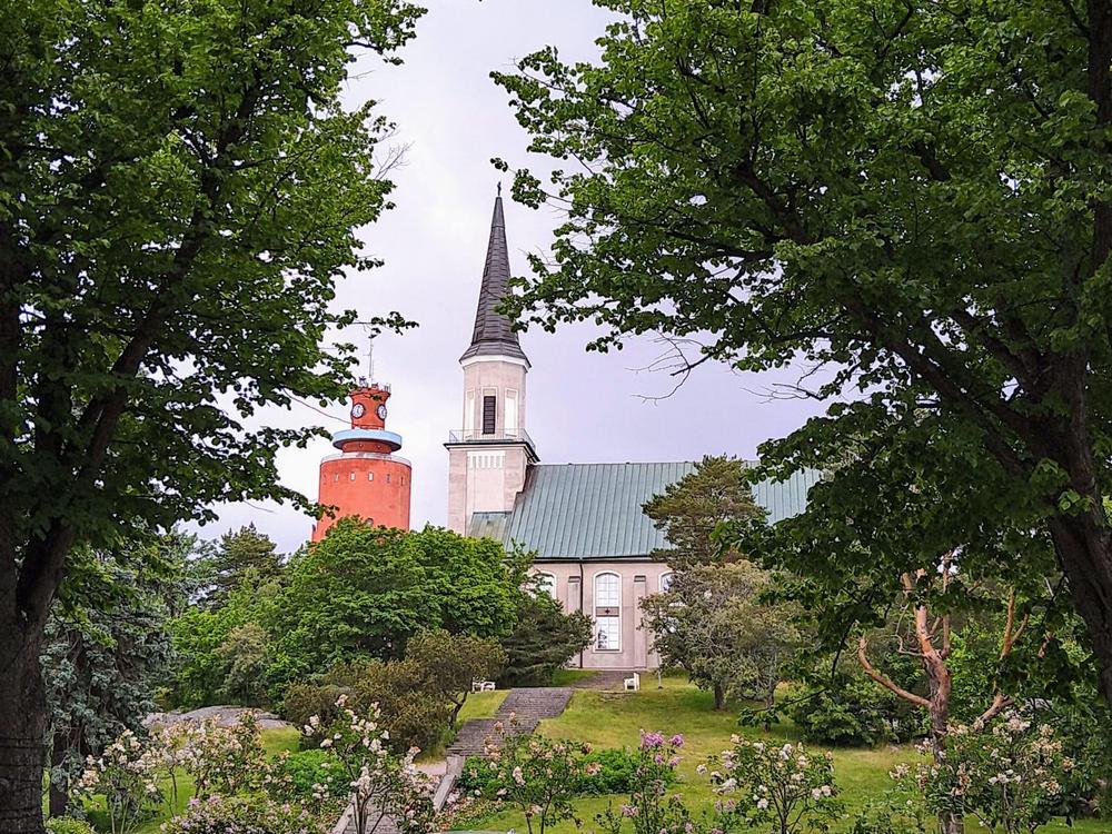 Tuula Joensuu kuvasi kaupungin rakennuksia kiertoajelun aikana ja päätteeksi: käsityökauppa Villa Orrman sekä kirkko ja vesitorni.