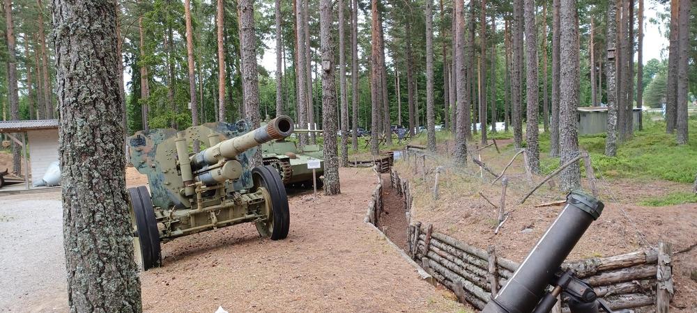Rintamamuseossa tutustuimme Hankoniemen sodanaikaisiin tapahtumiin, museo sijaitsi kaupungista itään Neuvostoliitolle vuokratun alueen rajalla. Vuokra-aika 1940-41 oli lyhyt mutta dramaattinen. Museon näyttelytilaa, tykkihallia ja juoksuhautoja kuvasi Jorma Railio.