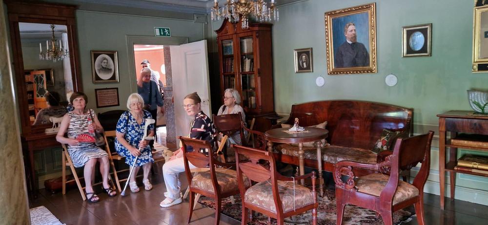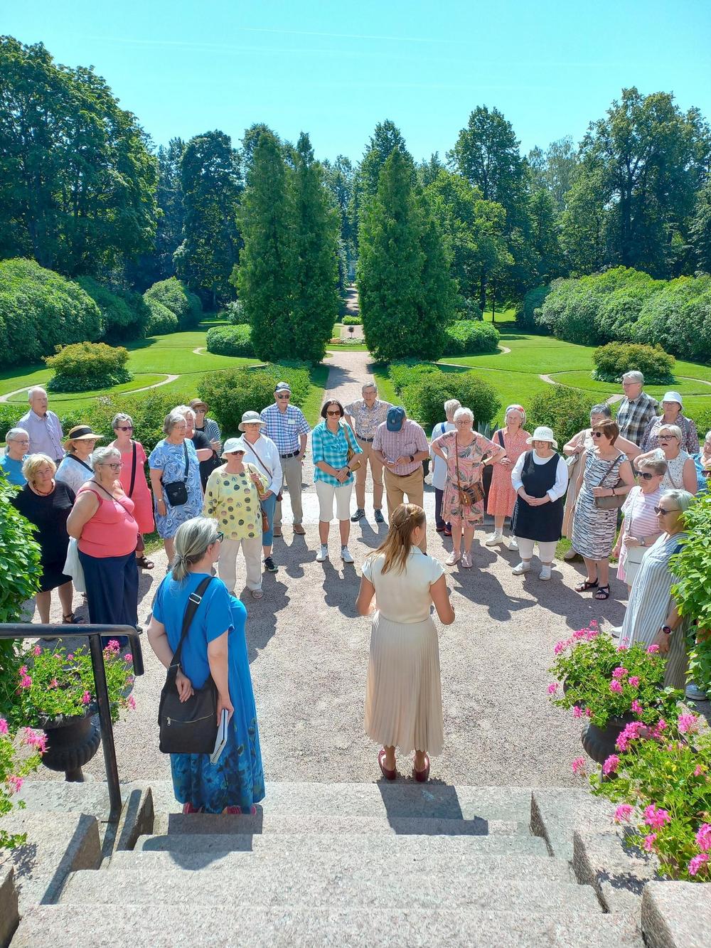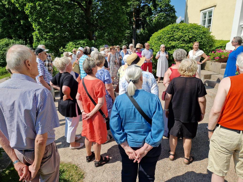 Helsingin seudulla tutustuimme mm. Laila Pullisen ateljeemuseoon ja veistospuistoon, josta oli yöllä varastettu kaksi isoa pronssiveistosta. Saimme silti hienon opastuksen. Herttoniemen kartanosta raportoi matkanvetäjämme Sirkku Haapala: -"Herttoniemen kartanon toinen opas oli sopraano Johanna Engelbarth. Hänen ryhmänsä sai parikin musiikkiesitystä. Toinen niistä ” Sua vain yli kaiken mä rakastan”, joka on Herttoniemen kartanossa kuvatusta elokuvasta ”Munkkiniemen kreivi”"