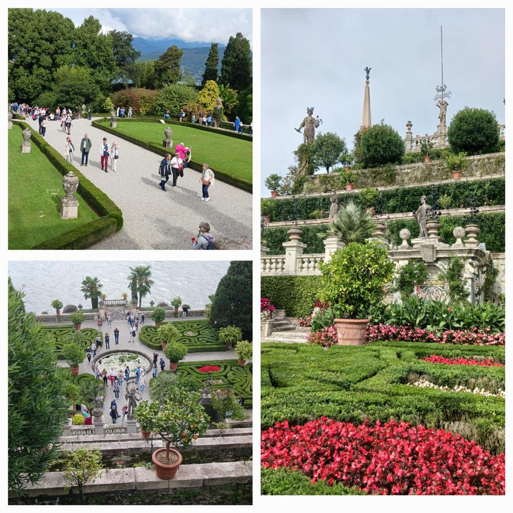 Majapaikasta Stresan kaupungissa teimme venematkan Isola Bella ja Isola dei Pescatori -saarille. Siellä teimme kierroksen Borromeo-suvun omistamassa loisteliaassa palatsissa, jonka ylin kerros on edelleen heidän yksityiskäytössään ”kesähuvilana”. Palatsiin kuului myös teatraalinen puutarha patsaineen, istutuksineen ja valkeine riikinkukkoineen.