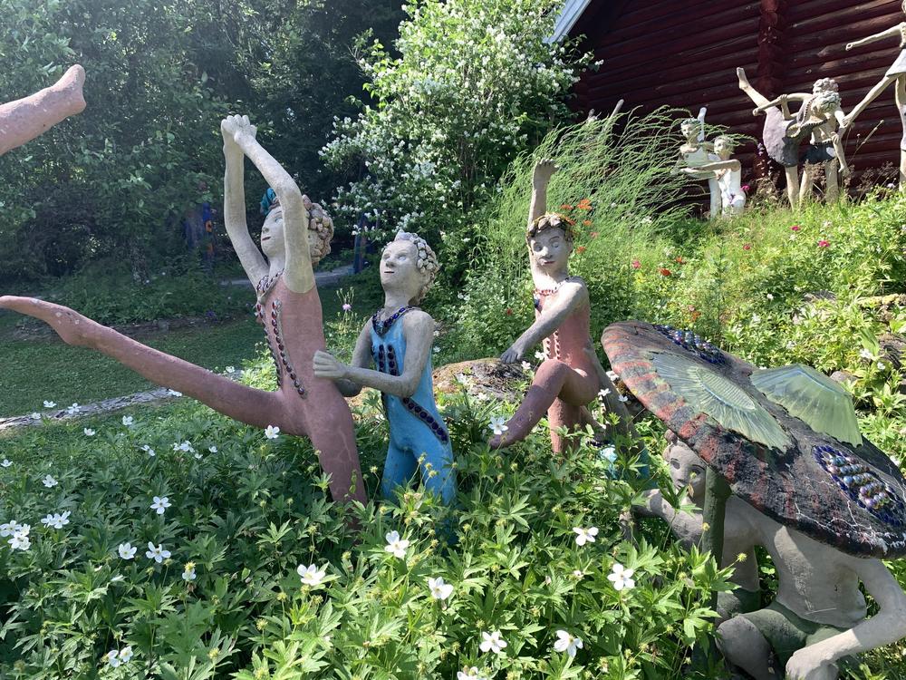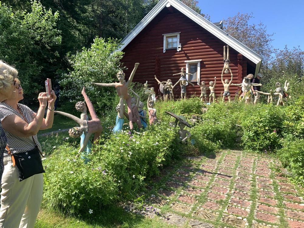 Monille oli menomatkan kohde, Parikkalan patsaspuisto, täysin tuntematon. Patsaita ja ilmeisen hyvin patsaiden joukkoon sulautuneita senioreita kuvasi matkanvetäjämme Outi Ruohela,