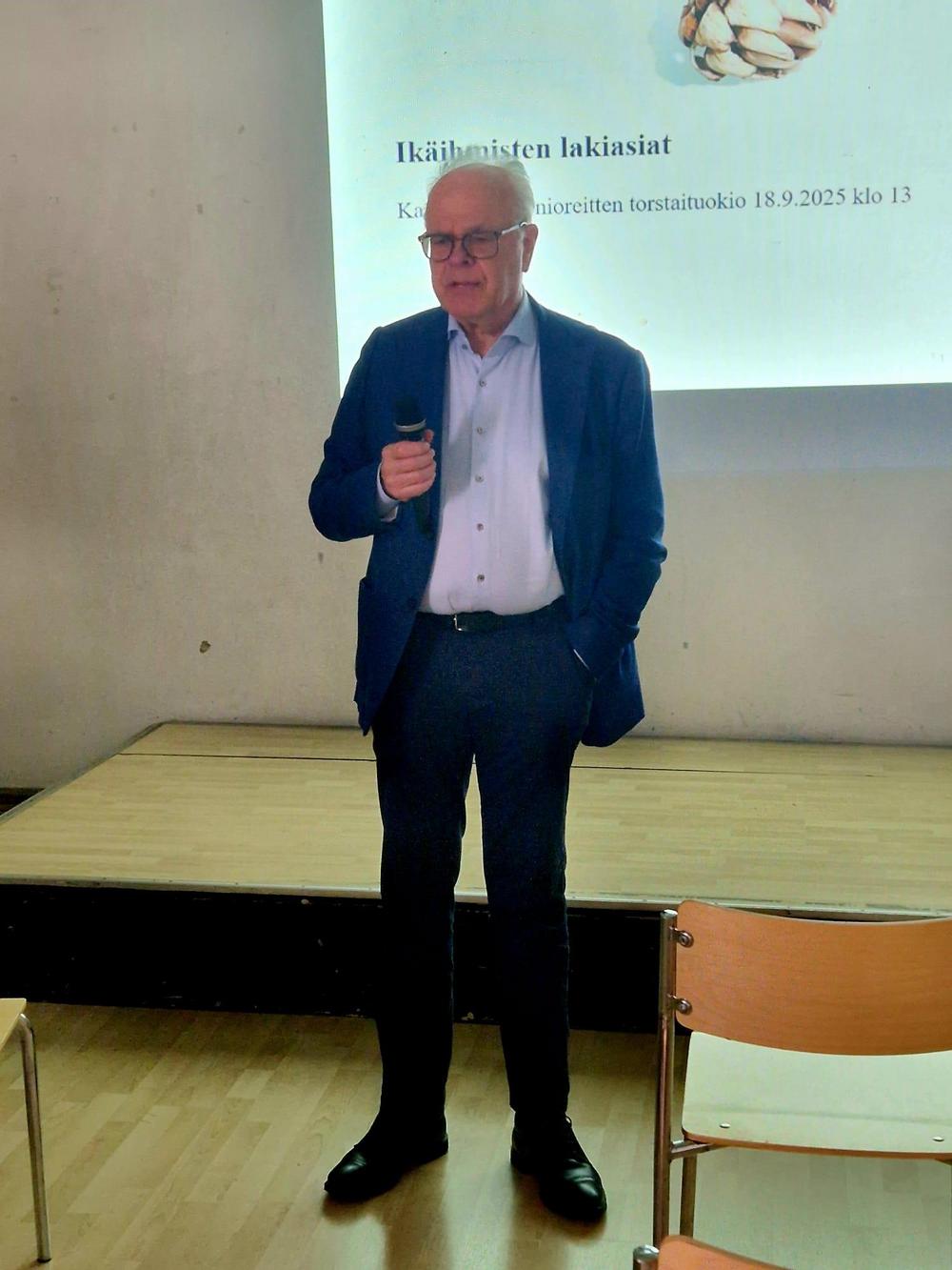Syksyn ensimmäinen torstaituokio: Pekka Romo ja ikäihmisten juridiikkaa. Monipuolinen kattaus erittäin tärkeistä asioista!